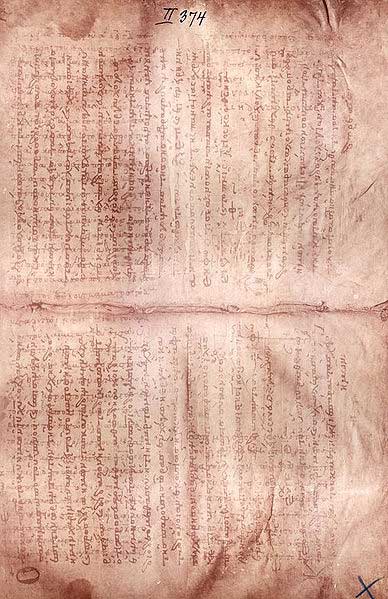A sample page of the Archimedes palimpsest from Wikimedia Commons