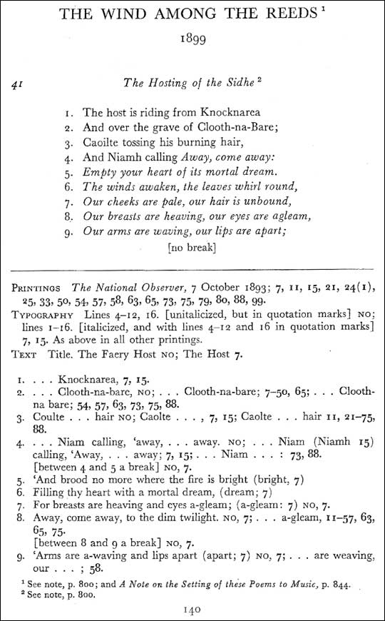 1 Peter Allt and Russell K. Alspach, The Variorum Edition of the Poems of W. B. Yeats (New York: Macmillan, 1957).